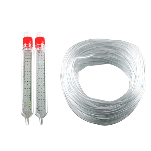 Прочные пластиковые колбы со шкалой выступают контрольными сосудами, а специальный ползунок позволяет сделать отметку полученного результата.