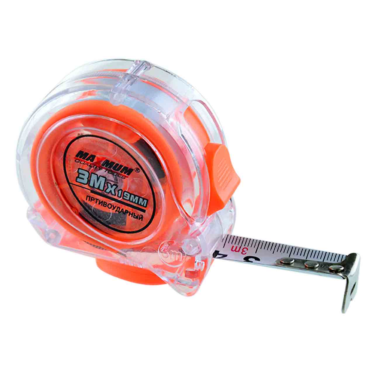 Рулетка измерительная 3 м*19 мм от бренда "MAXIMUM" выполнена в стильном прозрачном противоударном корпусе.