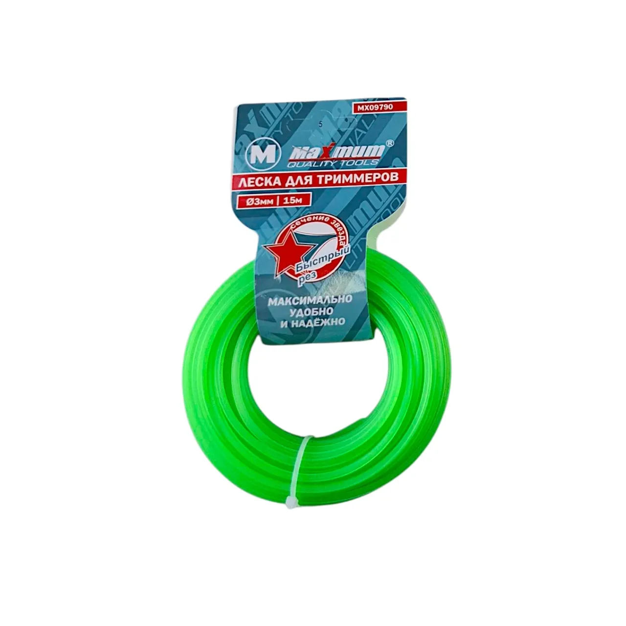 Леска триммерная 3 мм имеет сечение в форме звезды и является отличным режущим элементом, который заправляется в триммерную головку. Яркий цвет лески хорошо виден в любых погодных условиях, в плотном покрове травы и в условиях сниженной освещённости. Материал изготовления – полиамид (нейлон и функциональные добавки). При выборе лески для триммера от Maximum Quality Tools следует учитывать характер срезаемой растительности и интенсивность использования инструмента. Это влияет и на скорость кошения и износ лески.