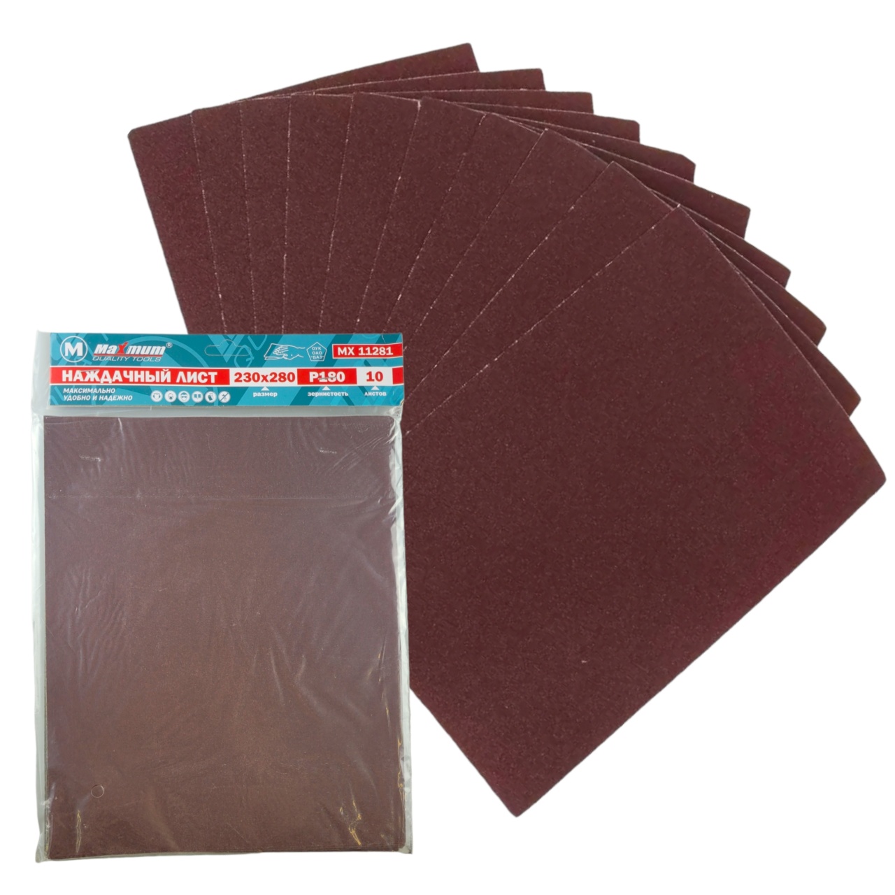 Наждачная бумага 230x280 мм от " Maximum Quality Tools" с зернистостью P 180 предназначена для шлифовки металла, пластиков, эмалей, лаков и др. Применяется для мокрой и сухой шлифовки, так как материал, пропитанный специальными смолами, не впитывает влагу. Отличается хорошей гибкостью, что позволяет качественно обрабатывать поверхность вручную.