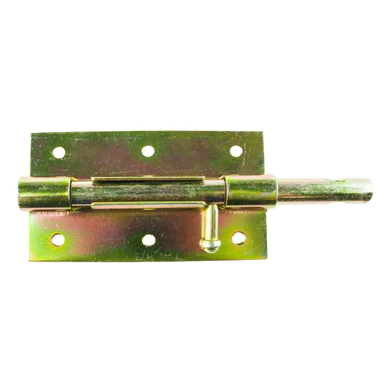 Задвижка дверная выполнена из высокопрочной инструментальной стали, которая не деформируется и не ржавеет, благодаря покрытию из желтого цинка. Фиксация створок происходит за счет стального прямого ригеля с вылетом 60 мм. Простая конструкция позволяет производить установку шпингалета максимально быстро и просто, для этого предусмотрено 6 отверстий под шурупы.