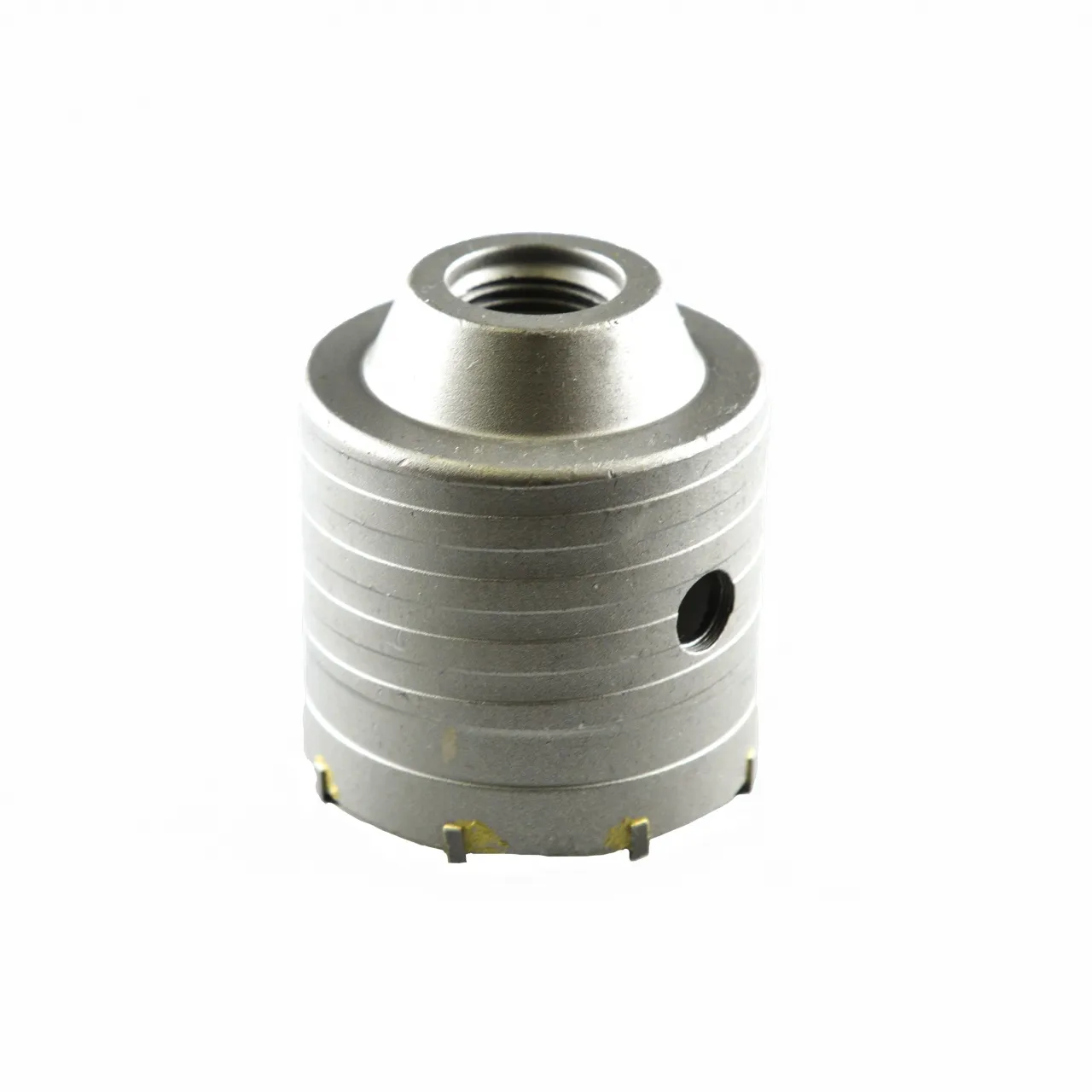 Прочная стальная коронка cо специальными твердосплавными напайками предназначена для работы с бетоном, известняком, камнем, кирпичом, клинкером.