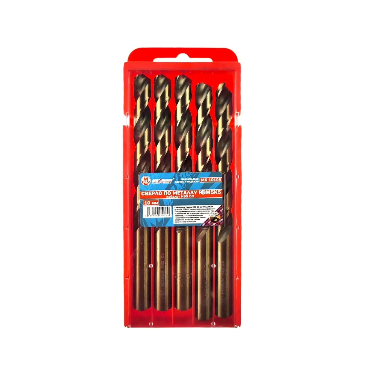 Сверла по металлу 10 мм P6M5K5 HSS CO от «Maximum Quality Tools» имеют ресурс службы выше на 80% по сравнению со сверлами других марок стали. Общая длина: 130 мм. Рабочая часть 90 мм. Сверло из кобальта применяется для нержавейки, титана, легированных сталей, чугуна, дерева. Добавление кобальта придает дополнительную жаропрочность – выдерживает температуру до 620-630°С. Обеспечивает быстрое и точное сверление отверстий. С данной оснасткой можно работать на повышенных скоростях резания – до 20 м/с.