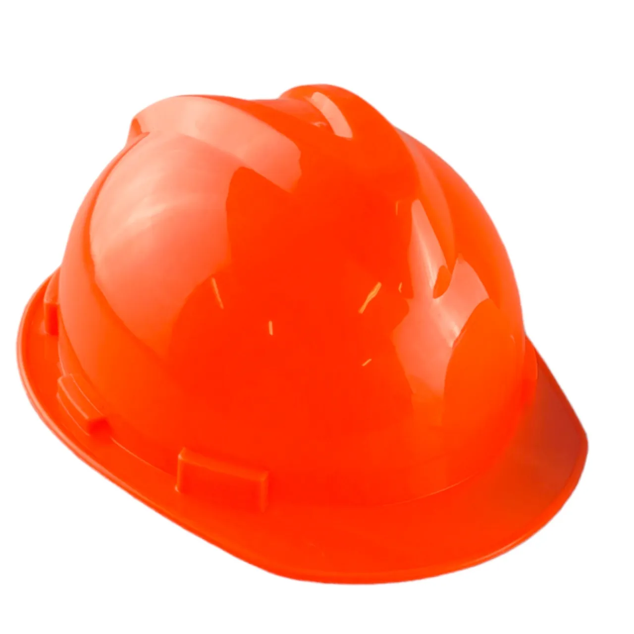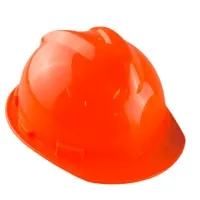 Защитная оранжевая каска легкая и прочная выполнена из полипропилена.